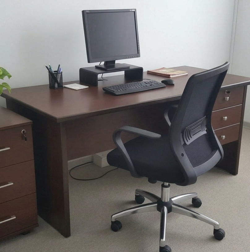 Luxury Executive Desk with Natural Wood Top and Curved Metal Accents