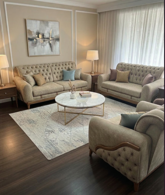English: Vintage Floral Armchair Set - Classic Wingback Design for Living Room